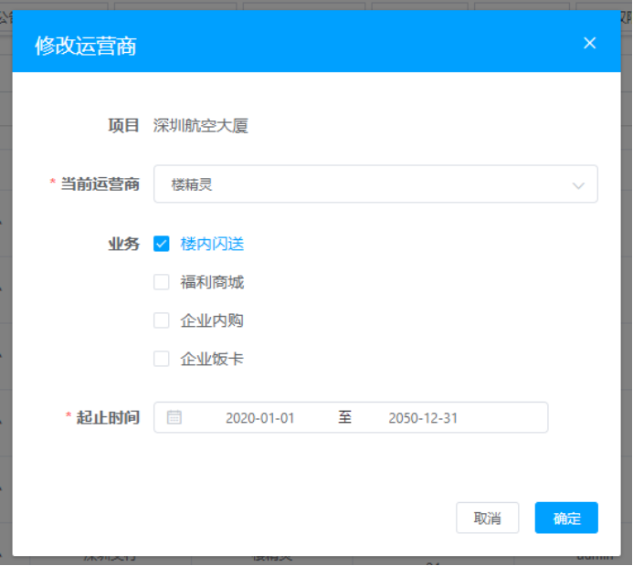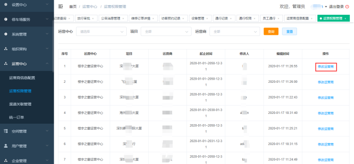 进入运营中心 - 运营权限管理,搜索项目,点击操作列的修改运营商