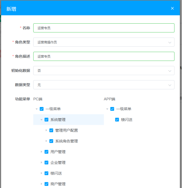 使用运营商管理员账号登录服务之窗,进入系统管理 - 系统角色配置页面,新建运营商操作员角色。