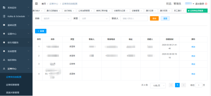在新增弹窗中录入运营商或渠道商信息,点击确定按钮;